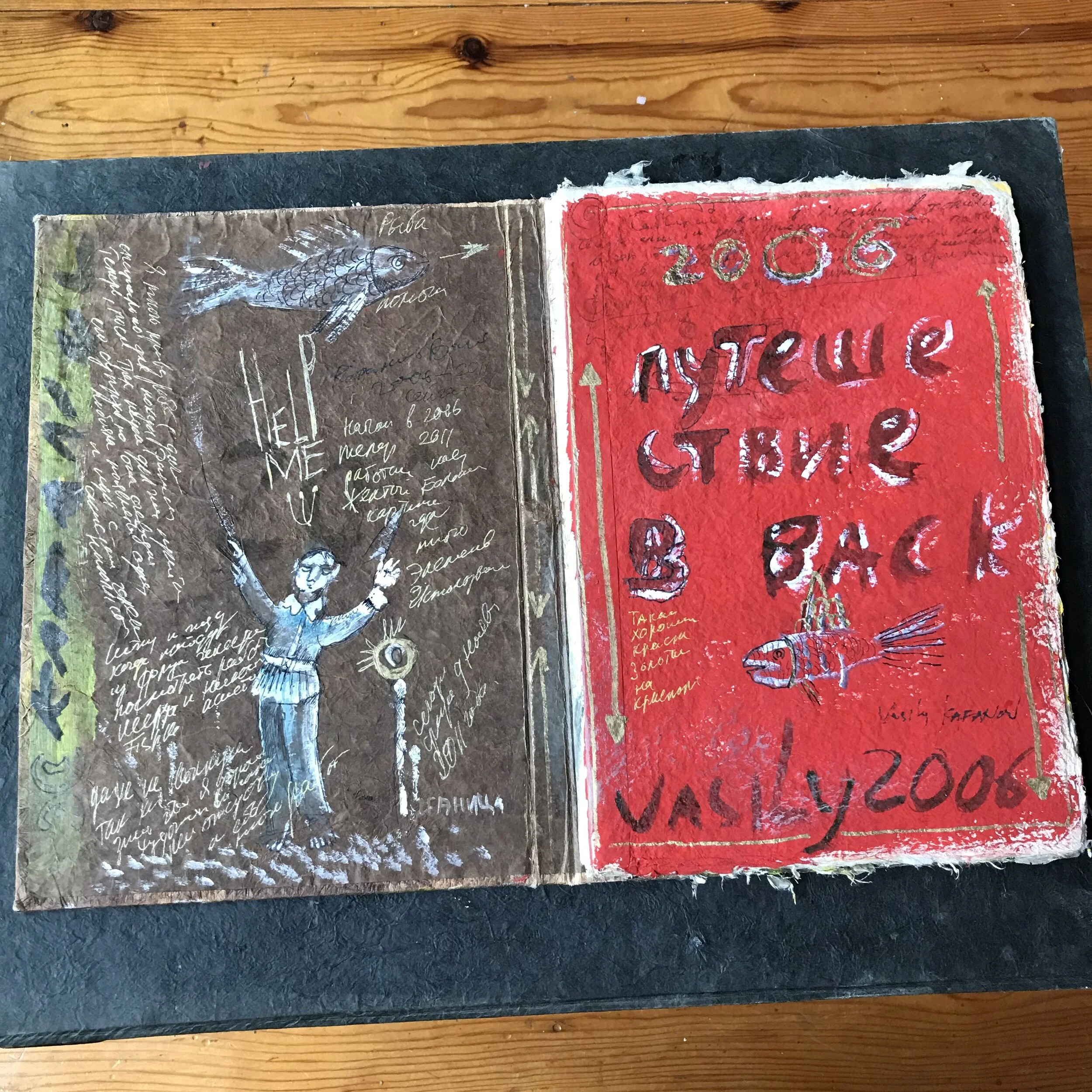 The sketchbook. 27 spread pages with drawings. Each page about 12x 17”. The book sells as one unit.